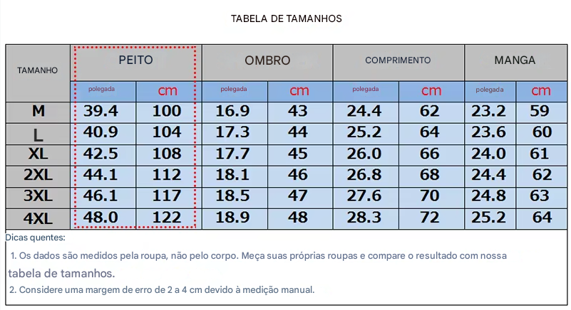 Para ajudá-lo a obter o melhor tamanho, dê uma olhada em nossa tabela de tamanhos antes de comprar, obrigado.