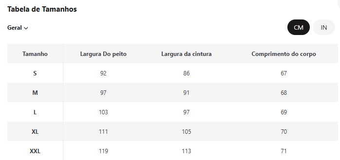 Ajuste: Tamanho verdadeiro, escolha seu tamanho normal