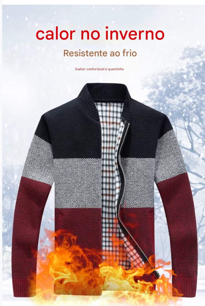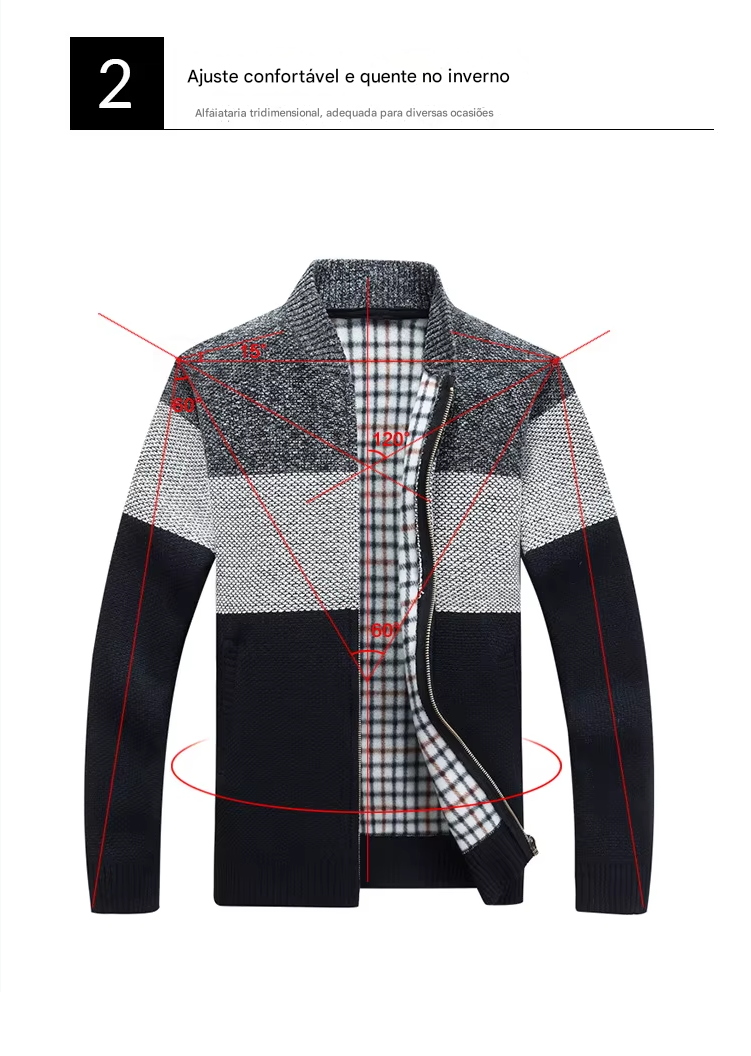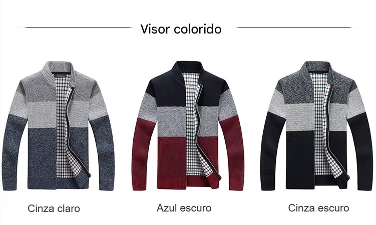 Este cardigan masculino é ideal para os meses de outono e inverno, oferecendo conforto e um visual moderno.