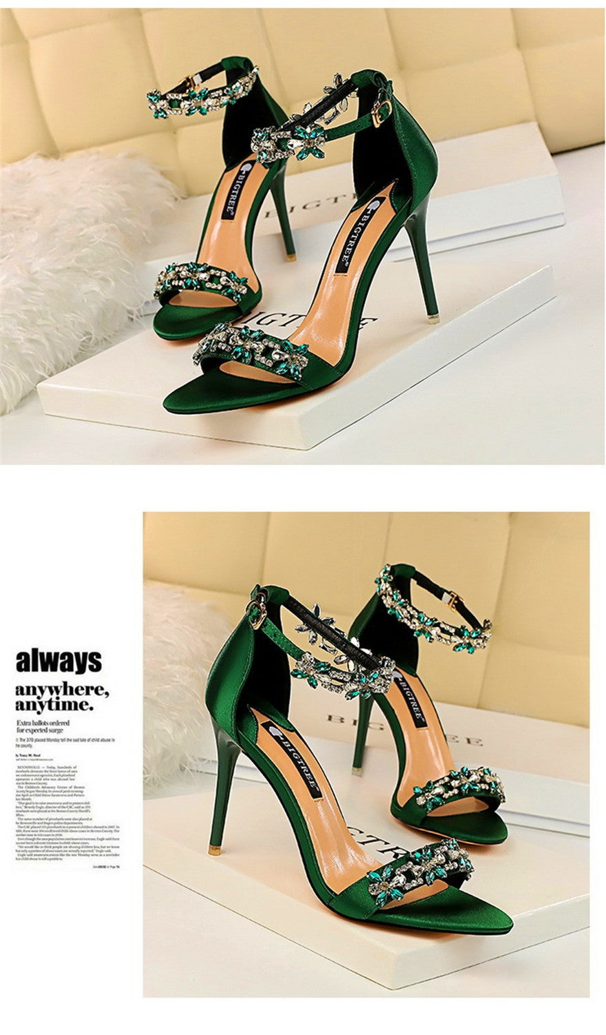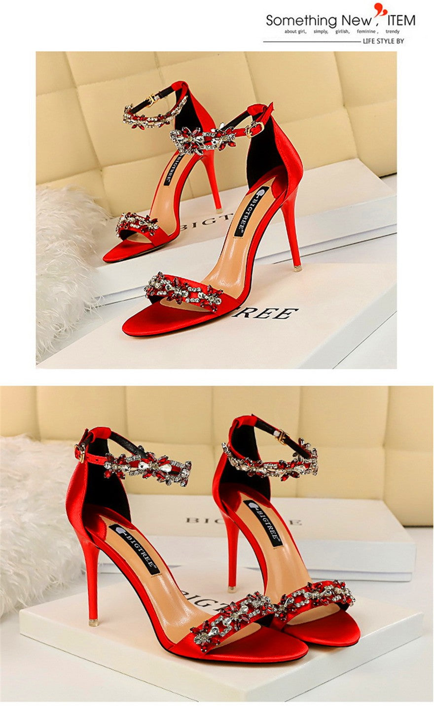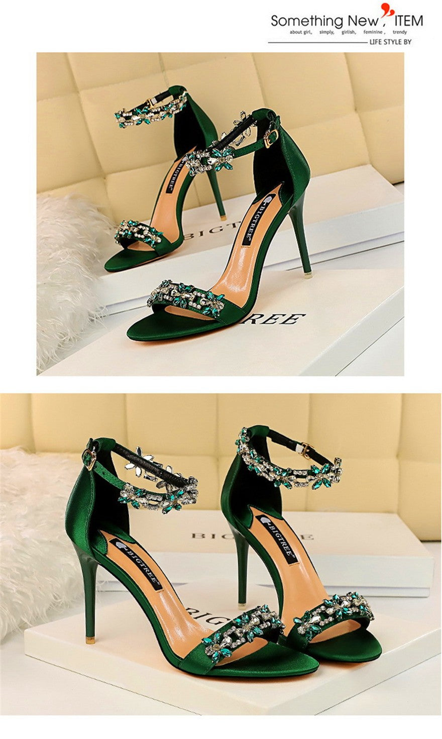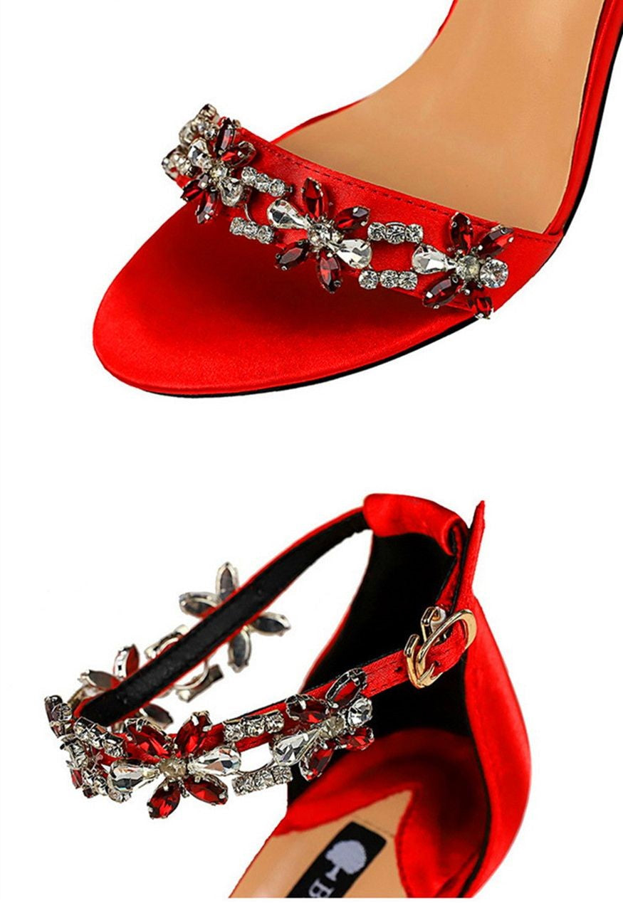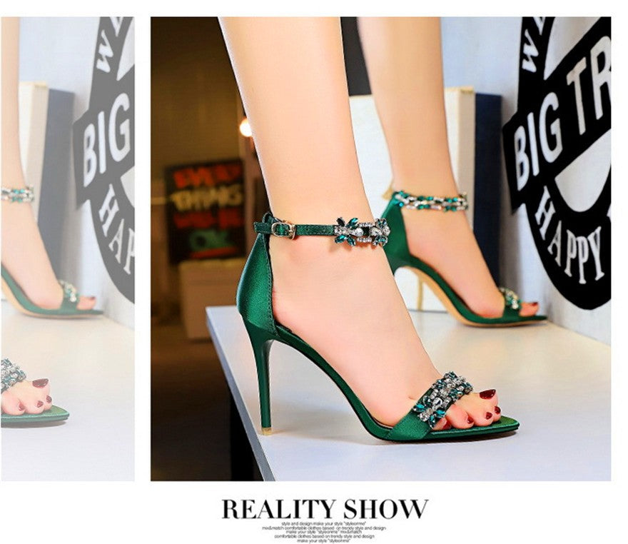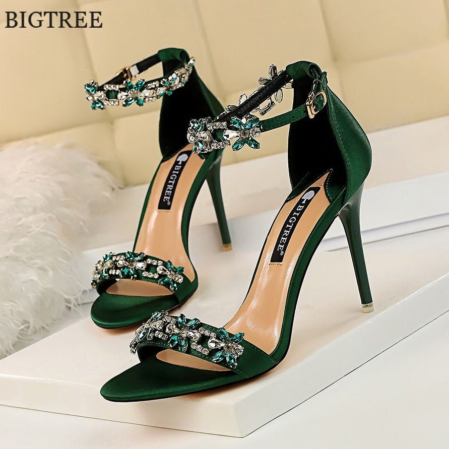 Sandálias femininas com dedo do pé aberto, confeccionadas em seda macia 🧵, perfeitas para o verão de 2025 ☀️! Luxuosas, com aplicação de cristais brilhantes 💎 e fivela no tornozelo 🔒. Ideais para festas 🎉, casamentos 💍 ou ocasiões especiais ✨. Sapatos de salto alto 👠 com estilo sofisticado, disponíveis nas cores verde 💚, vermelho ❤️ e preto 🖤 — um verdadeiro destaque para a sua coleção! 🌟